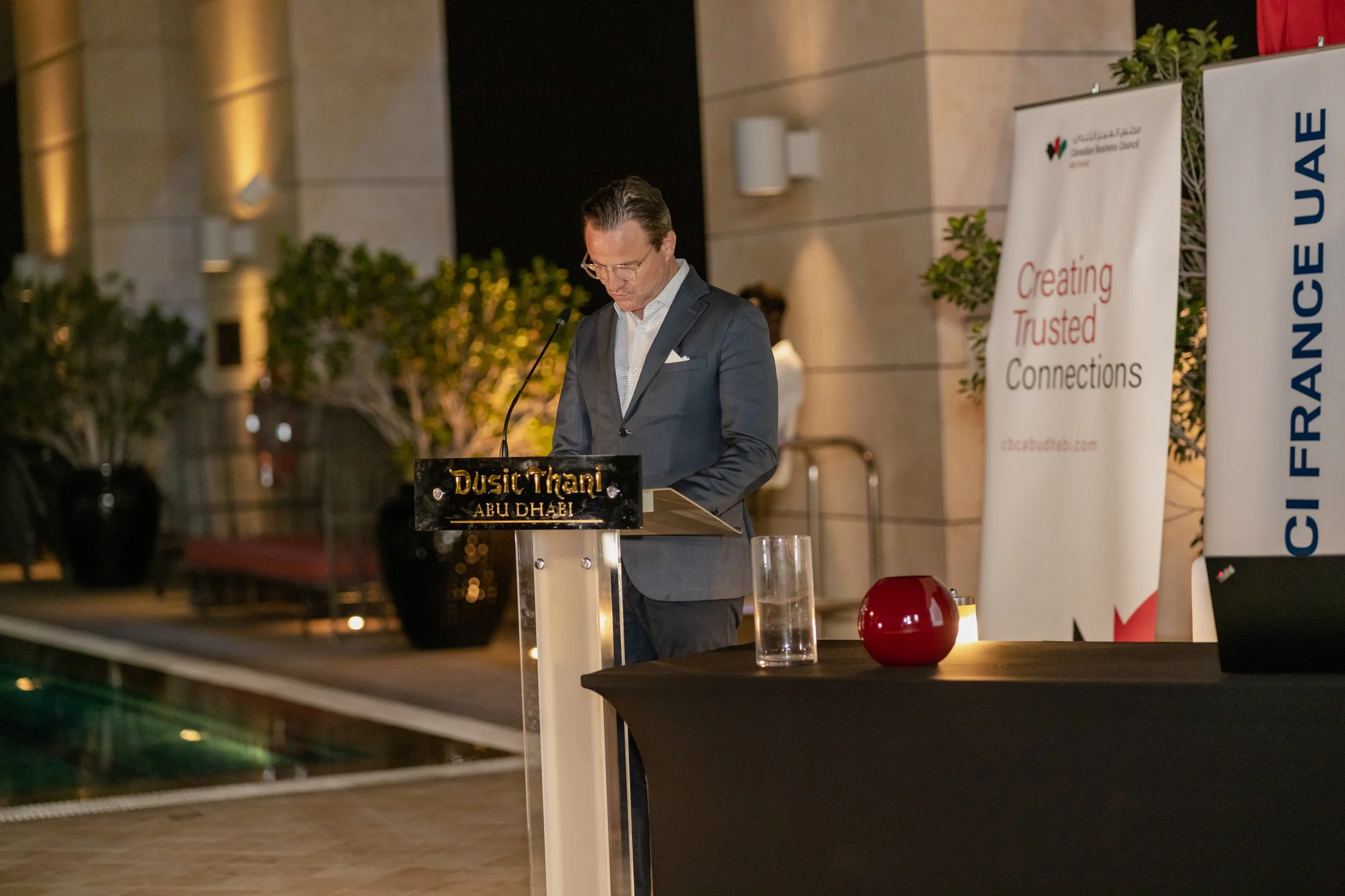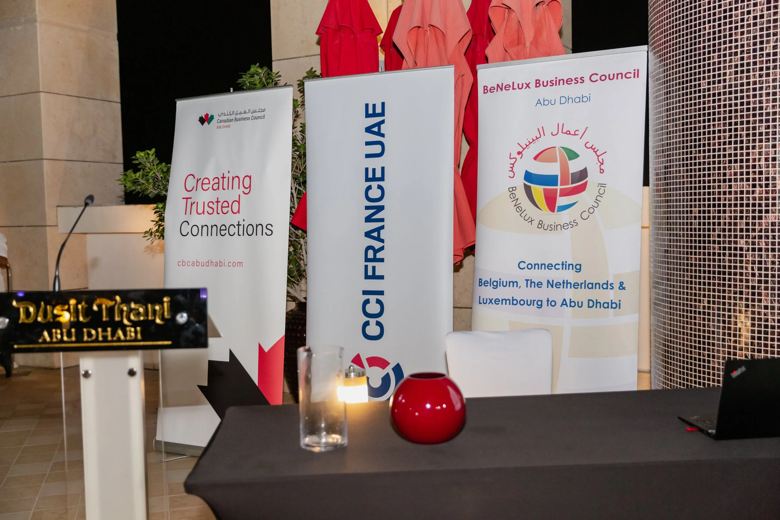 A joint social event for Canadian Business Council Abu Dhabi, CCI France UAE, and BeNeLux Business Council Abu Dhabi held in Dusit Thani Abu Dhabi on 15 March 2023 with special guest Belgian Ambassador His Excellency Antoine Delcourt.